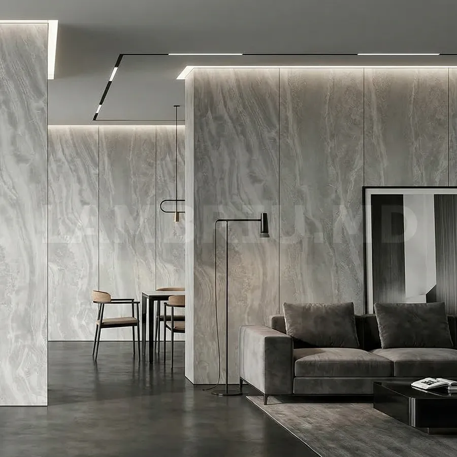 Благодаря крупному формату 965 х  2800 мм, панели позволяют создать эффект цельной поверхности с минимальным количеством стыков, что придаёт интерьеру аккуратный и дорогой вид.